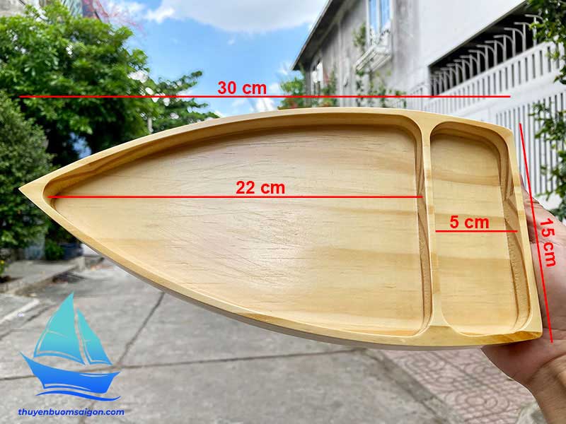 Thớt hình con thuyền gỗ 30cm đựng cá hồi hải sản